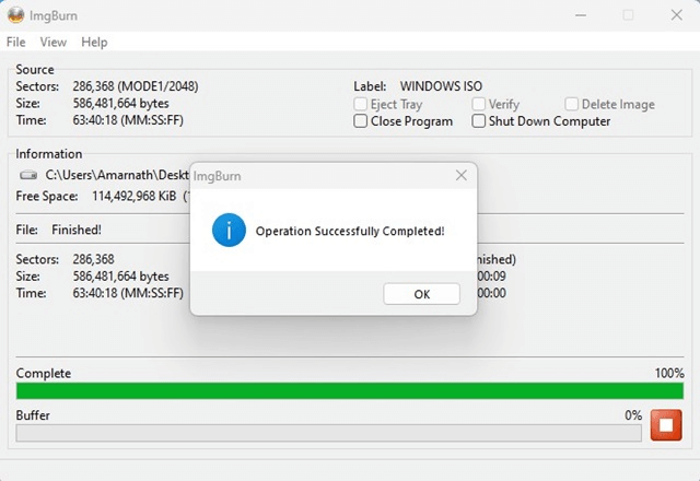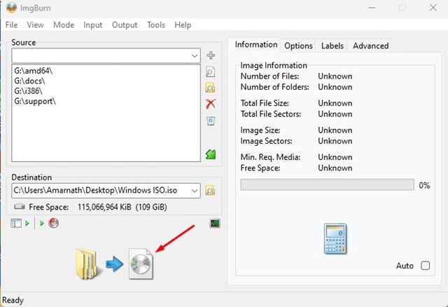 Trinn 10:Når du er ferdig, naviger til destinasjonsbanen der du finner ISO-filen.