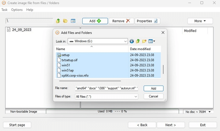 Trinn 5:Se nå gjennom og velg hver mappe på den oppstartbare USB-stasjonen. Etter å ha valgt, må du klikke på Legg til-knappen.