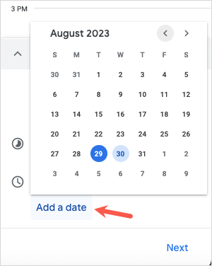 - For å legge til tilgjengelighet for en annen dato og klokkeslett, velgLegg til en dato.
