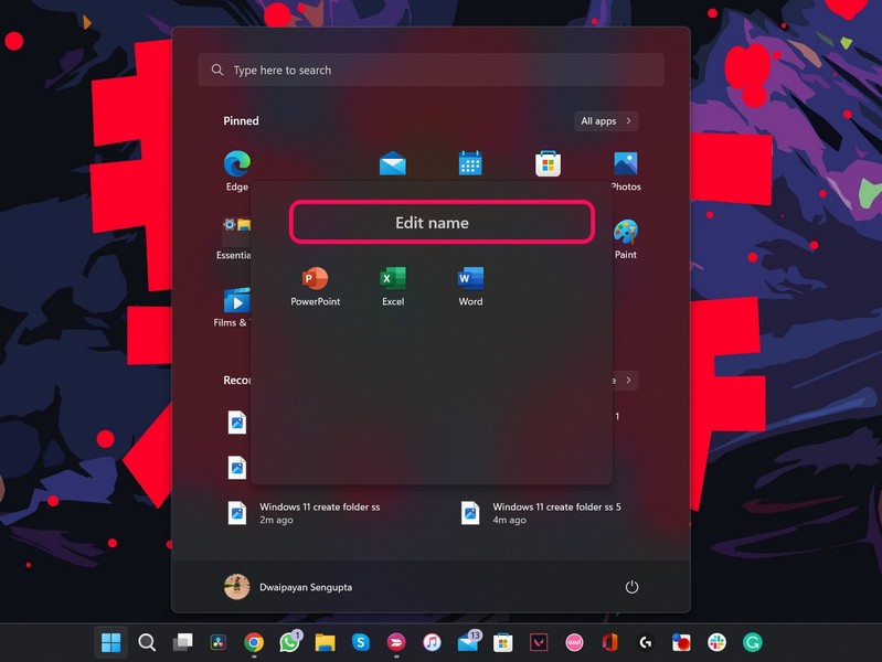 Når du har angitt navnet på mappen din, vil mappen begynne å vises med det samme i Windows 11 Start-menyen. Hvis du ønsker å gi nytt navn til den samme mappen i fremtiden, kan du følge de samme trinnene for å gjøre det.