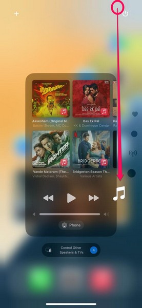 Nå, når du vil åpne den dedikerte kontrollplassen du opprettet i kontrollsenteret på iOS-enheten din, sveiper du bare ned fra øverste høyre kant av iPhone og fortsett å skyve fingeren til du kommer til den dedikerte kontrollsiden.
