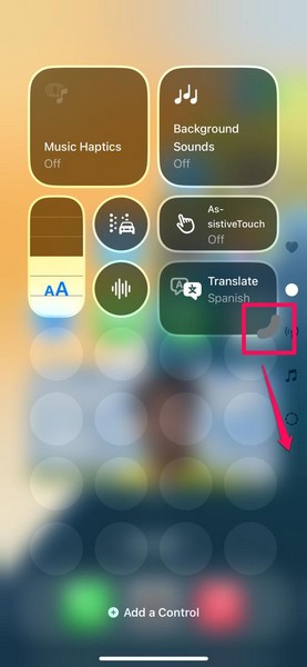3.Når kontrollsenteret kommer inn på Tilpass-skjermen, trykker du påLegg til en kontrollknappunder.
