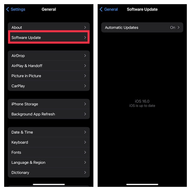 1.Naviger tilInnstillingerapp på din iPhone-> Generelt -> Programvareoppdatering.