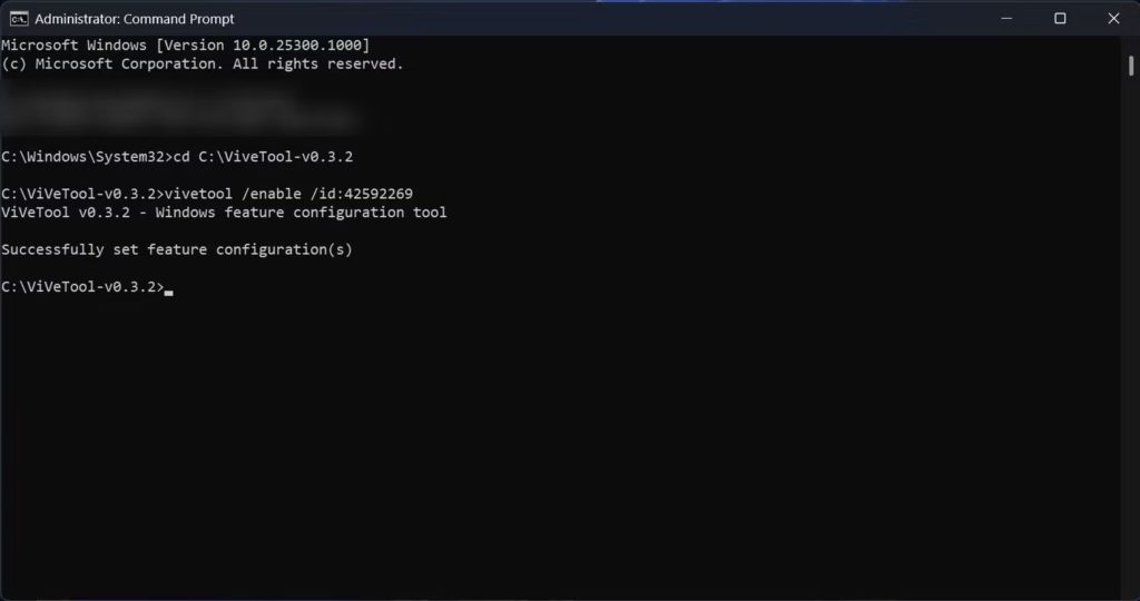 Trinn 3:Gi nytt navn til mappen som ViVeTool hvis den ikke allerede er den samme.