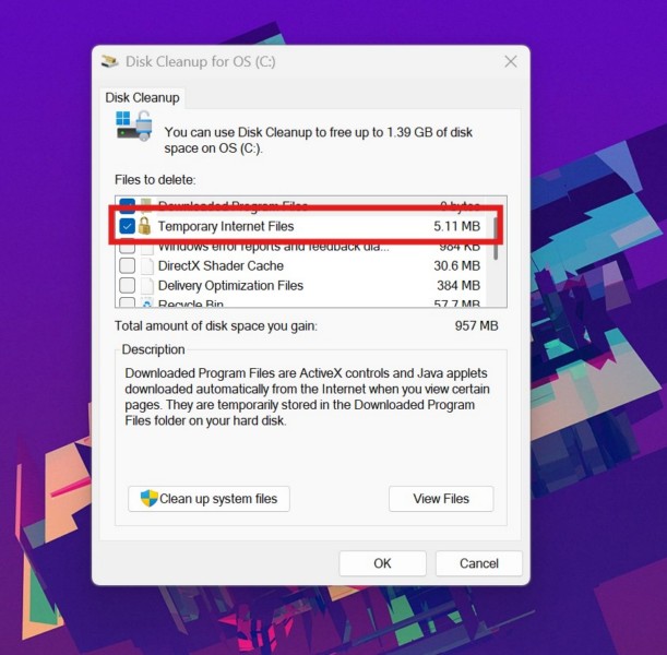 I dette tilfellet kan du bruke Diskopprydding-verktøyet til å fjerne alle de midlertidige internettfilene fra Windows 11-enheten. Du kan følge trinnene nedenfor for å gjøre det samme:
