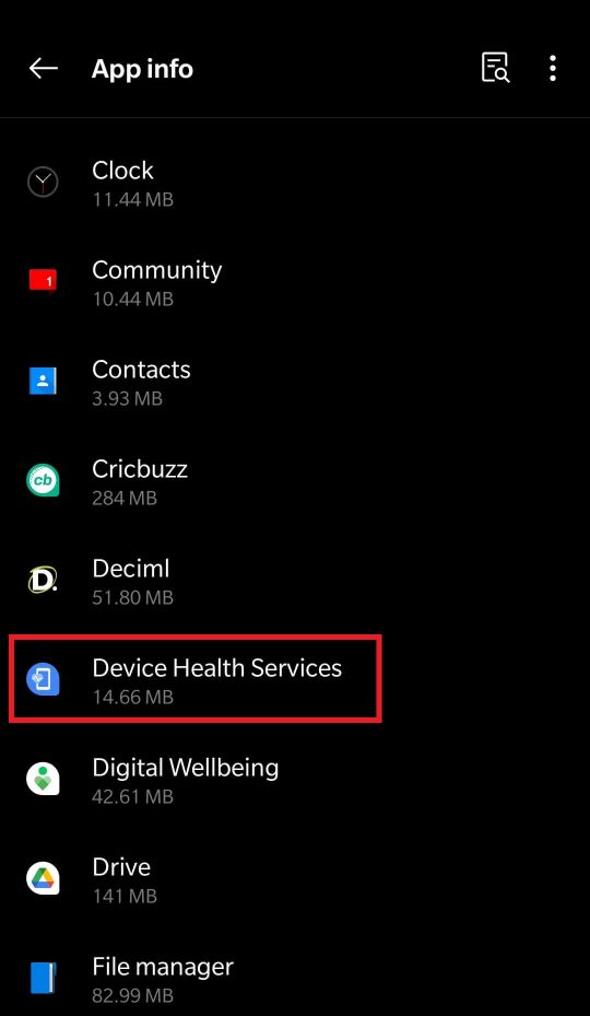 Trinn 2:Trykk påSe alle apperalternativer og bla ned og trykk påEnhetshelsetjenester.