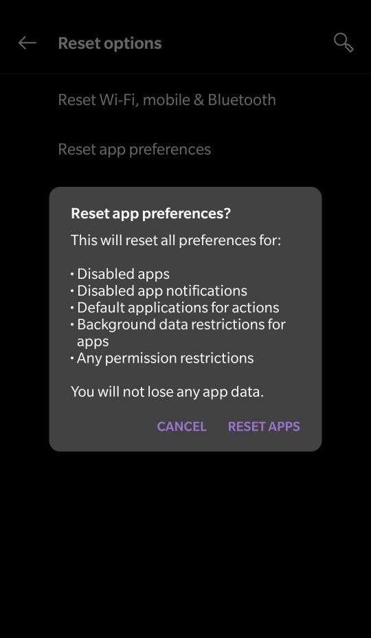 Trinn 3:Trykk påTilbakestill apppreferanser.