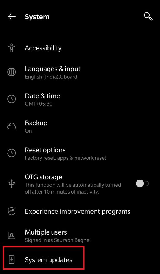 Trinn 3:Klikk nå påSystemoppdateringerellerProgramvareoppdatering.