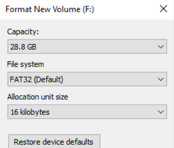 5.IFormater nytt volumvindu, velgFAT32 (standard)fraFilsystemmeny.
