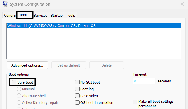 En tredjeparts app eller tjeneste kan være årsaken til dette problemet på PC-en din. For å sjekke dette,start PC-en i sikkermodusfor å starte den med viktige programmer og tjenester. Prøv trinnene nedenfor for å vite hvordan du starter en Windows-PC i sikkermodus for å feilsøke dette problemet: