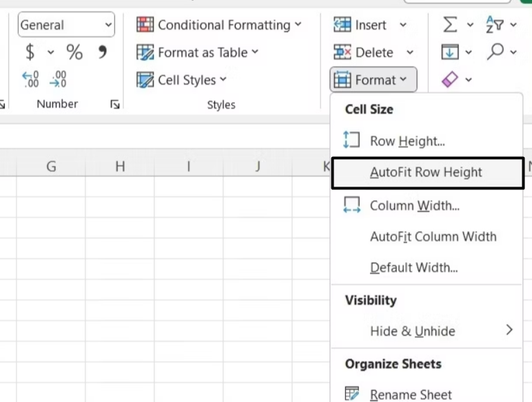 3.KlikkFormattil høyre, og fra rullegardinmenyen, velgAutoFit radhøydealternativ.