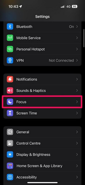 Ikke forstyrr-modusen på iPhone er nå en del av Focus Mode-funksjonen. Så hvis du kjører den siste iOS 17-oppdateringen på din iPhone, kan du finne Ikke forstyrr-modus i fokusflisen i kontrollsenteret. Du kan konfigurere DND-modusen på din iPhone via fokusinnstillingene.