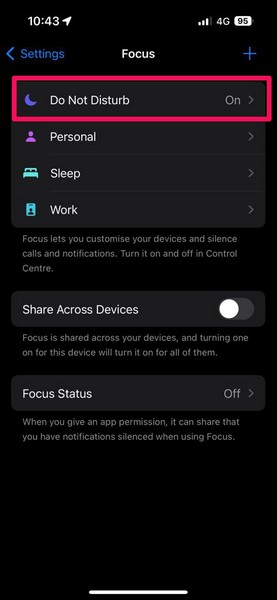 Etter alle disse endringene, slå på Ikke forstyrr-modus på iPhone og sjekk om problemet er løst eller ikke. På dette tidspunktet bør ikke forstyrr-problemet løses på iPhone.