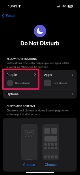Så hvis du ønsker å få en virkelig uavbrutt opplevelse med Ikke forstyrr på iPhone, kan du følge trinnene nedenfor for å konfigurere den deretter: