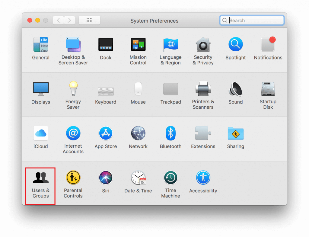 Trinn 2 –Klikk påBrukere og grupperiSystemvalg.