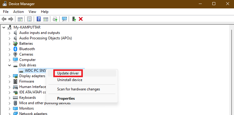 - Velg alternativet "Oppdater driver" i hurtigmenyen.