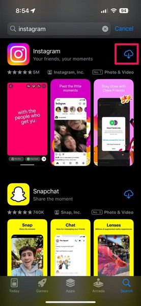 7.Trykk påLast ned-knappved siden av Instagram-appen på søkeresultatsiden.
