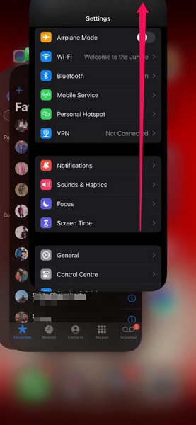 3.Dette vil tvangslukke Innstillinger-appen på iPhone.