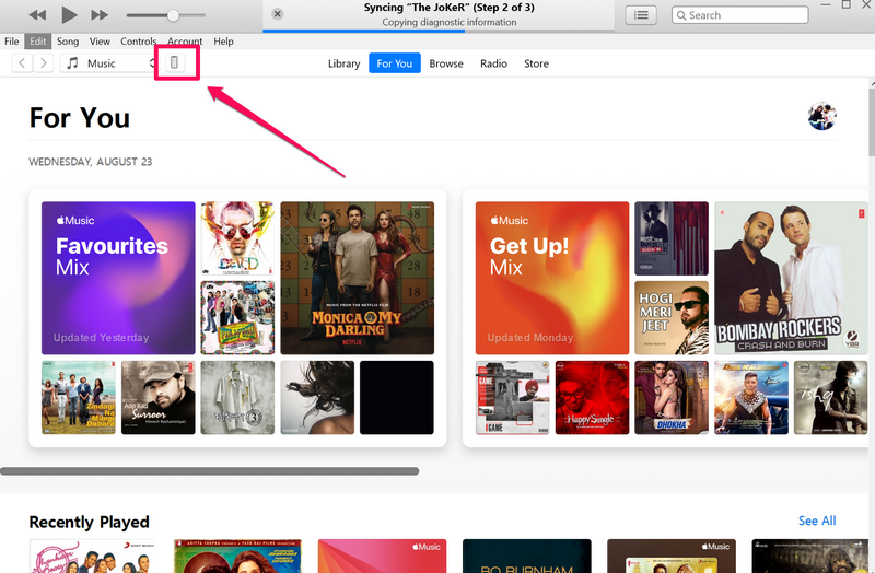 3.Nå,klikk på iPhone-ikoneti iTunes for å åpne egenskapssiden.
