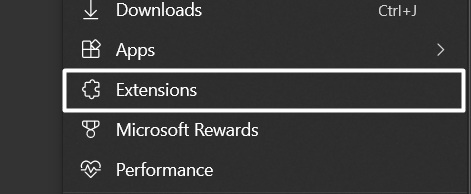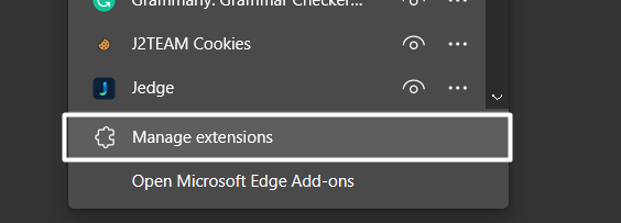 2.VelgUtvidelseralternativet fra ellipsemenyen for å se alle nettutvidelsene som er lagt til Edge-nettleseren din.