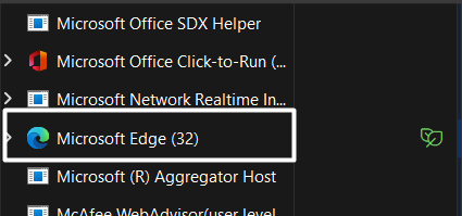 2.Søk deretter etterMicrosoft Edgeapp iProsesserdelen avOppgavebehandlingog høyreklikk på den.