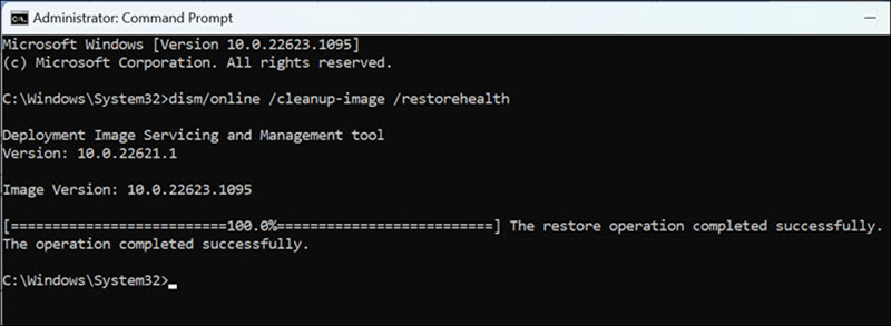 3.DISM-skanningen vil ta tid å reparere eventuelle ødelagte filer. Etter det, sjekk om Microsoft Teams fungerer som det skal.