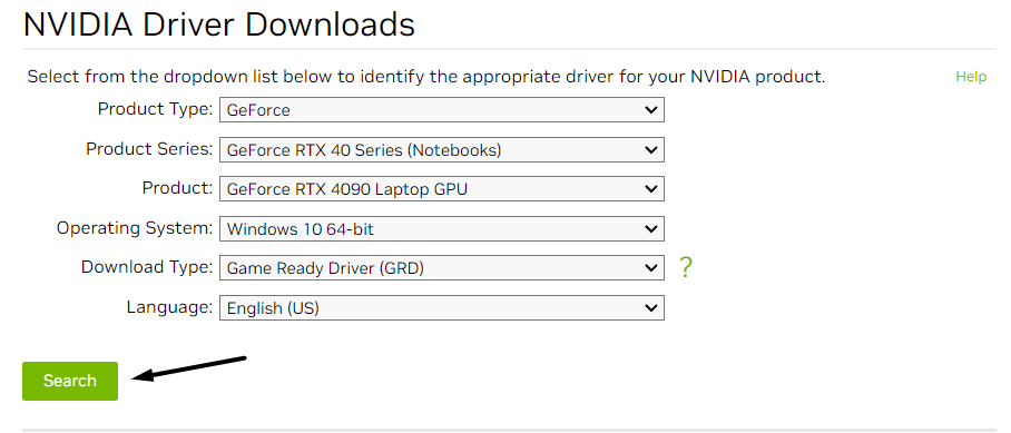 3.Når du er ferdig, velg Nvidia-grafikkkortserien fraProduktserie:rullegardinmenyen.
