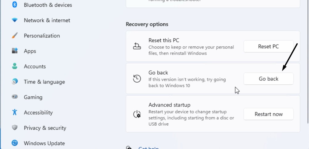 Noen brukere iReddit forumnevnte at problemet begynte å dukke opp etter å ha oppgradert deres Windows 10-datamaskin til den nyeste Windows 11. Hvis det er tilfellet med deg, kan du vurderetilbakestille den til Windows 10ved hjelp avGå tilbakefunksjon i Innstillinger-appen. Hvis du er klar til å gjøre det samme, følg trinnene nedenfor:
