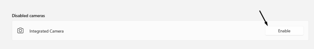 3.På den neste skjermen utvider duIntegrert kameraog klikk påDeaktiverknapp.