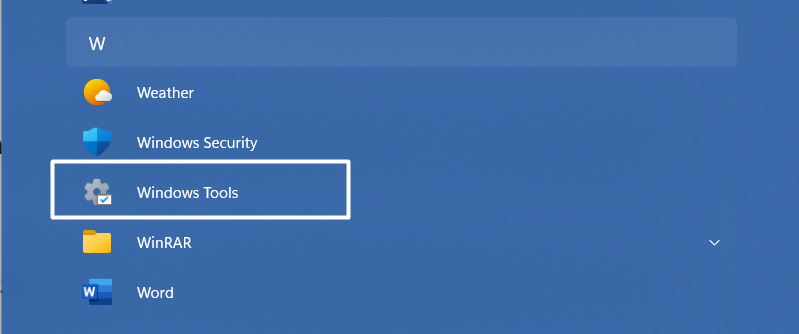 2.Søk etterWindows-verktøyiAlle apperog klikk på den for å få tilgang til alle Windows-verktøyene.