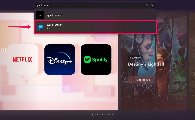 Hvis oppdatering av Quick Assist-appen ikke løste problemet på din Windows 11 PC eller bærbare datamaskin, prøv å installere appen på nytt. Dette bør kvitte seg med mindre appproblemer som kan forårsake at Quick Assist ikke fungerer-problemet i Windows 11 og løse det på enheten din med en gang. Følg trinnene nedenfor for å installere Quick Assist-appen på nytt i Windows 11: