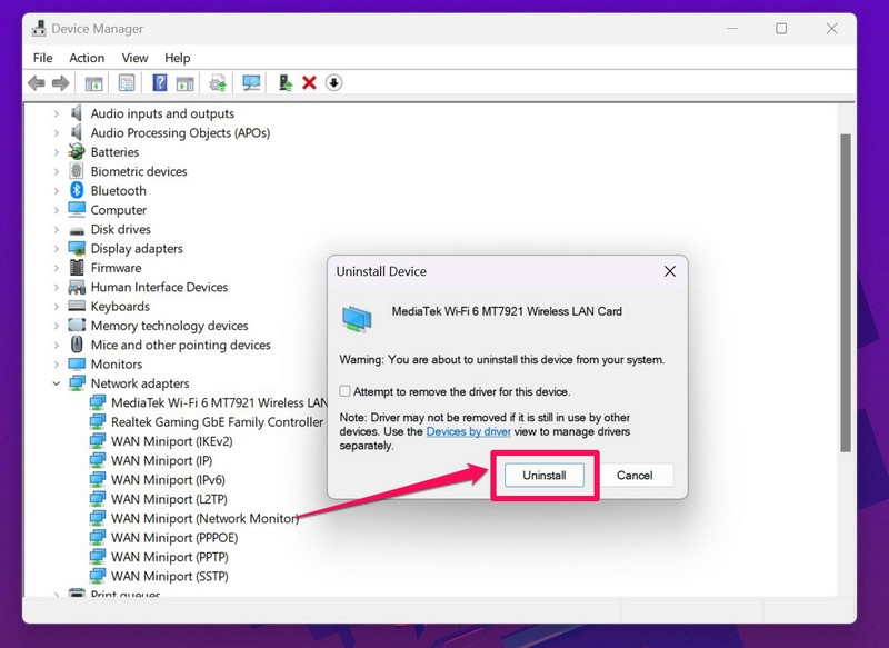 8. Installer Wi-Fi-driveren på nytt i Windows 11
