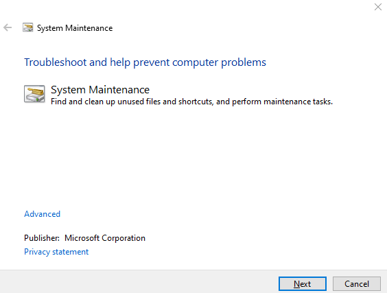 En rekke brukere som hadde det samme problemet har indikert at det var fullstendig løst i deres omstendigheter etter å ha kjørt Feilsøking for systemvedlikehold og tatt i bruk den nevnte løsningen. Det du må gjøre er som følger: