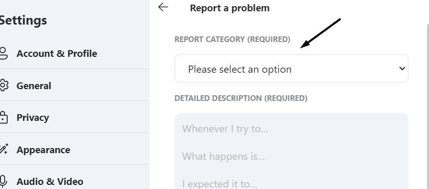 3.Velg riktig alternativ fraRAPPORTER KATEGORI (OBLIGATORISK)rullegardinmenyen.
