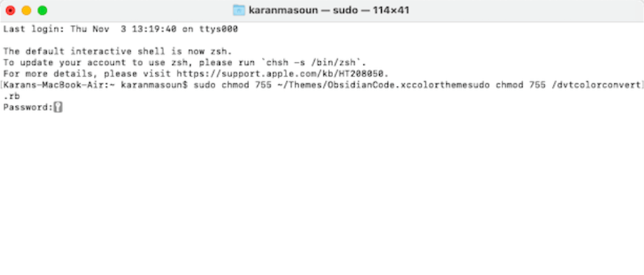 Trinn 4:Basert på de viste tillatelsene, kan du brukechmodkommando for å endre dem. Vær imidlertid forsiktig siden feil bruk kan føre til sikkerhetssårbarheter. Det anbefales å konsultere Apple-dokumentasjonen eller søke hjelp fra en erfaren bruker hvis du er usikker på noechmodkommandoer.