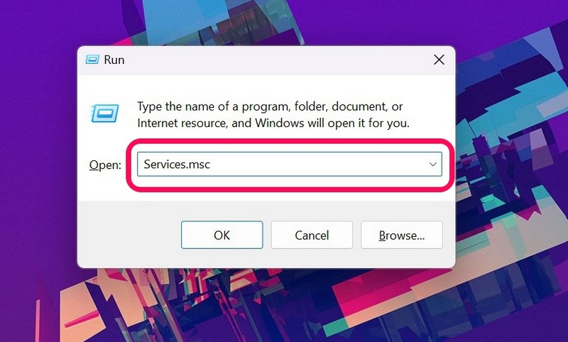 2.Skriv innServices.msci det angitte tekstfeltet og trykk Enter.