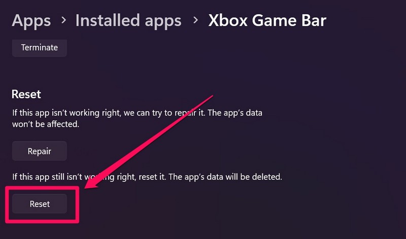 Nå, hvis det ovennevnte ikke fungerte og du fortsatt opplever at Xbox Game Bar ikke fungerer i Windows 11-problemet på din PC eller bærbare datamaskin, prøv å reparere eller tilbakestille appen fra Windows-innstillingene. Det er ganske enkelt å reparere og/eller tilbakestille Xbox Game Bar-appen i Windows 11, og her er hvordan du kan gjøre det på enheten din: