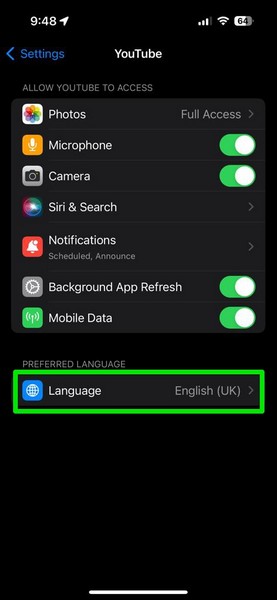 Nå spiller de konfigurerte innstillingene for YouTube-appen på din iPhone også en viktig rolle i riktig drift for den. I tilfelle YouTube-appen på iOS-enheten din ikke har full eller begrenset tilgang til Bilder-appen, er den ikke aktivert for oppdatering av bakgrunnsapper, eller for mobildata, kan du få problemer med den.