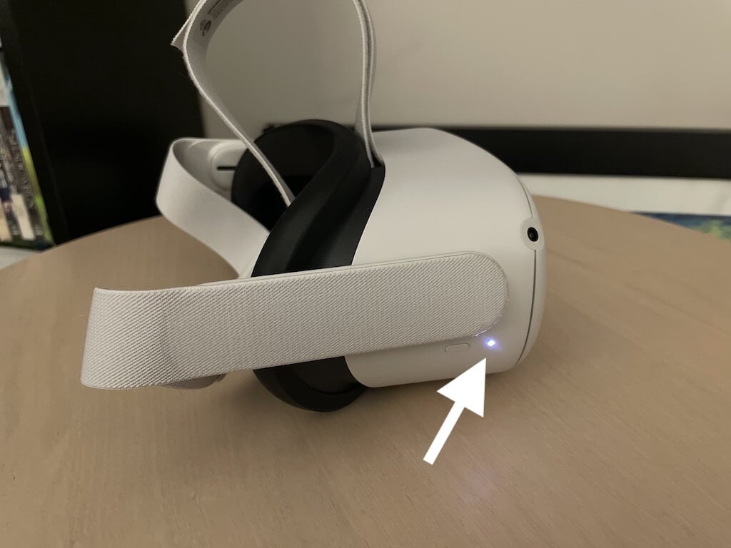 Ikke bare kast Quest 2 i hvilemodus når du er ferdig med en lekeøkt. Slå av helt. Bare trykk på og hold inne av/på-knappen til indikatorlampen på hodesettet slår seg av og du hører avslåingen.