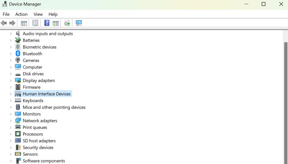 Trinn 3:Finn og klikk på Human Interface Devices for å utvide den.