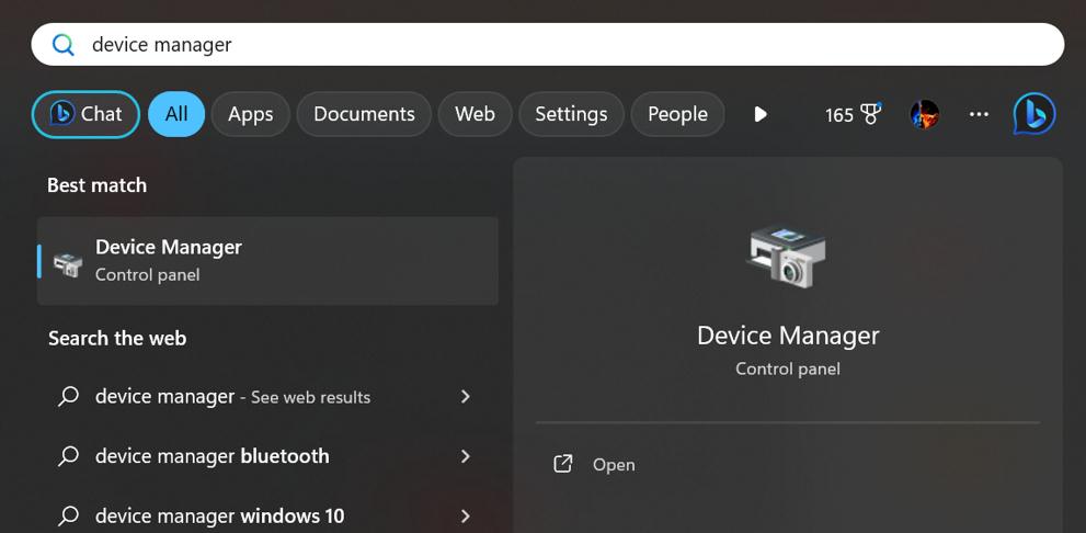 Trinn 2:Skriv "Enhetsbehandling" og klikk på det beste resultatet for å åpne Enhetsbehandling-vinduet.