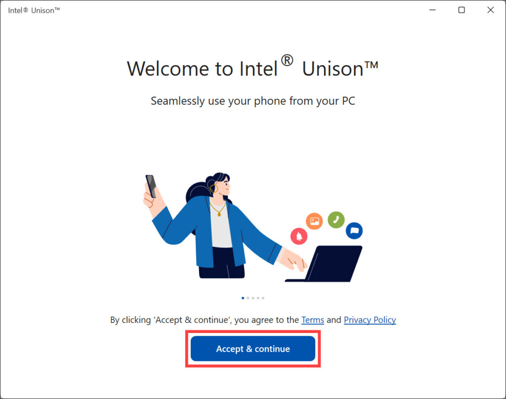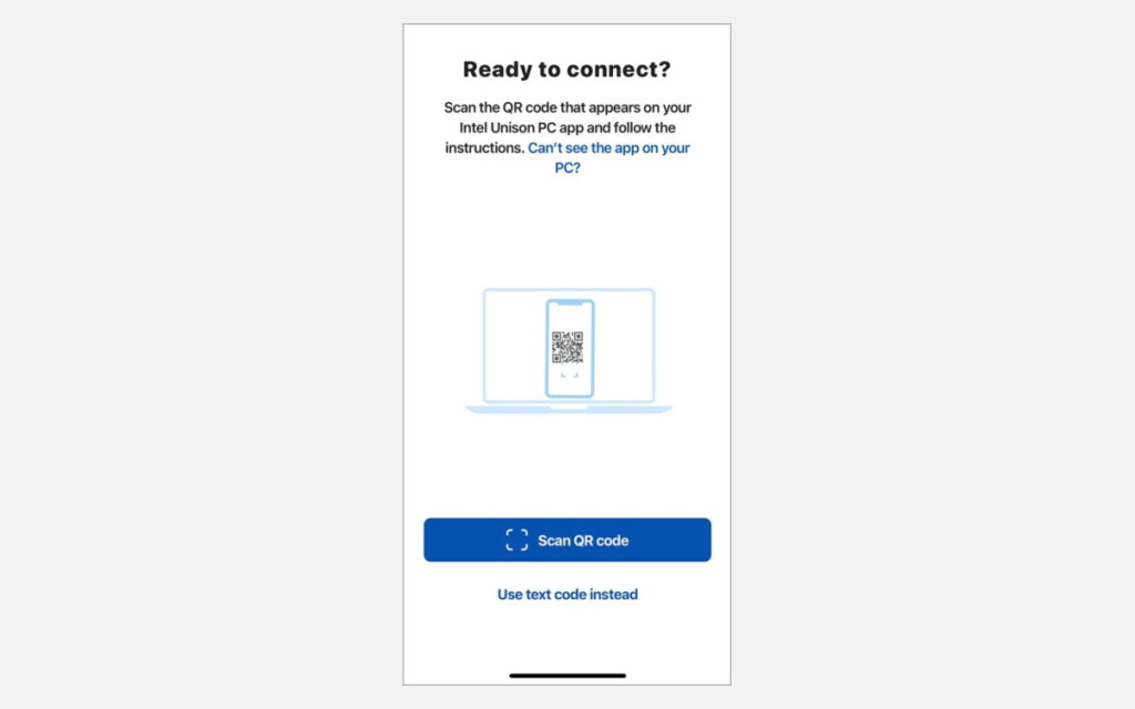 Appen er klar til sammenkobling. Det neste trinnet er å laste ned og installere Intel Unison-appen på din Android- eller iPhone-enhet.