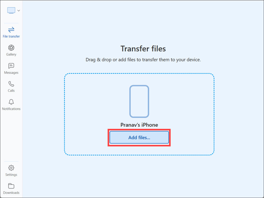 2.Klikk påLegg til filereller bare dra og slipp filen du vil overføre til telefonen.