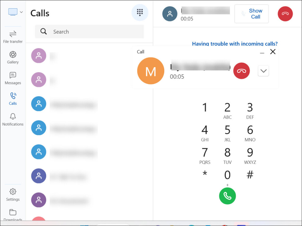 1.Start appen på datamaskinen, bytt tilSamtalerog velg kontakten du vil ringe. Du kan også slå nummeret ved hjelp av talltastaturet.