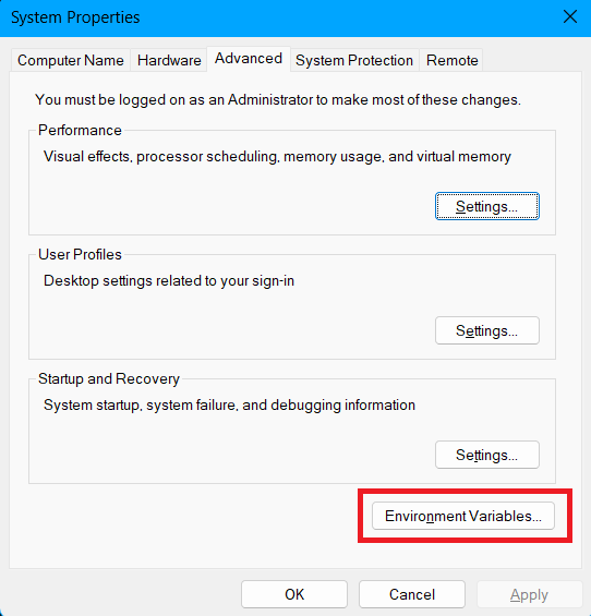 4.Klikk påMiljøvariabler.
