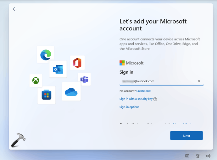 18.Skriv deretter inn Microsoft-kontoen du vil bruke med systemet.