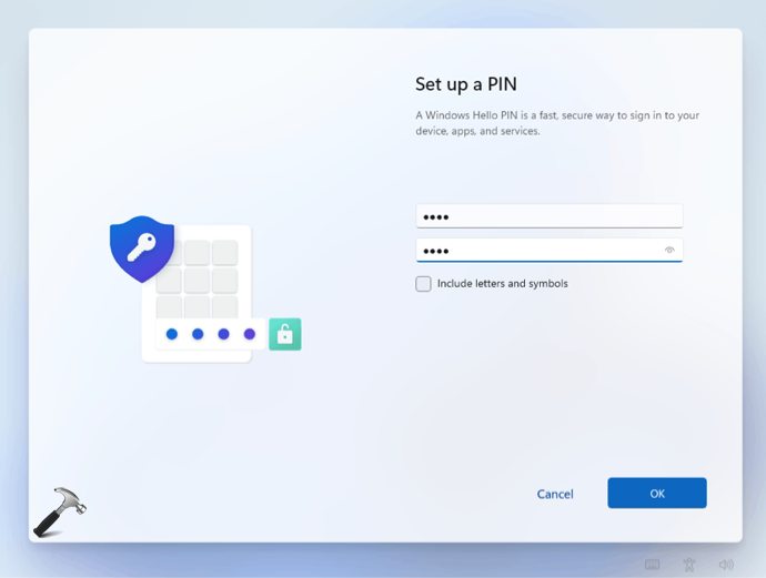 21.Under Sett opp en PIN-kode skriver du inn en PIN-kode og klikker OK.