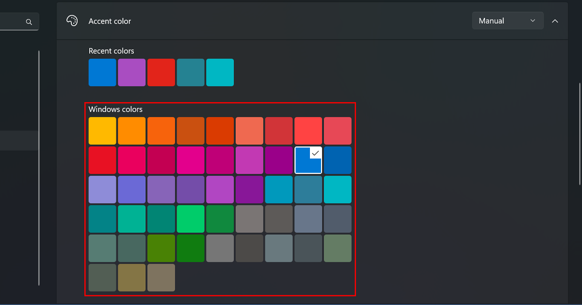 - UnderAksentfarge, velg den nye fargen for oppgavelinjen (ogStart-menyen).