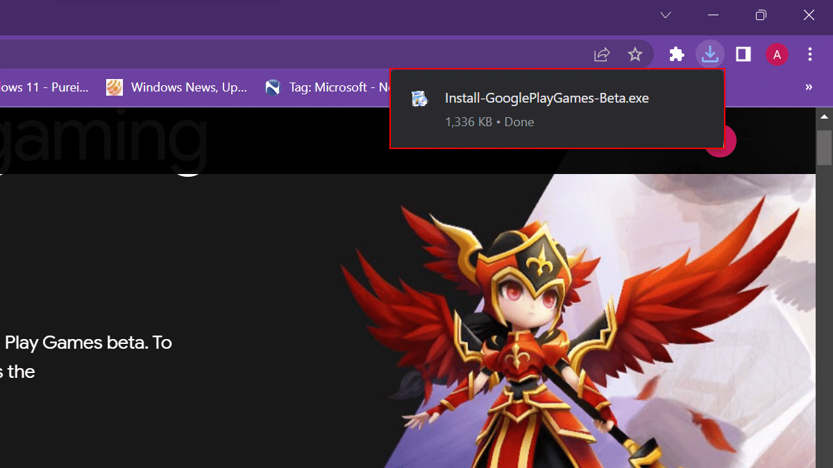 - ÅpneGoogle Play Spill(nett) > klikk påLast ned betaknappen for å laste ned installasjonsprogrammet.