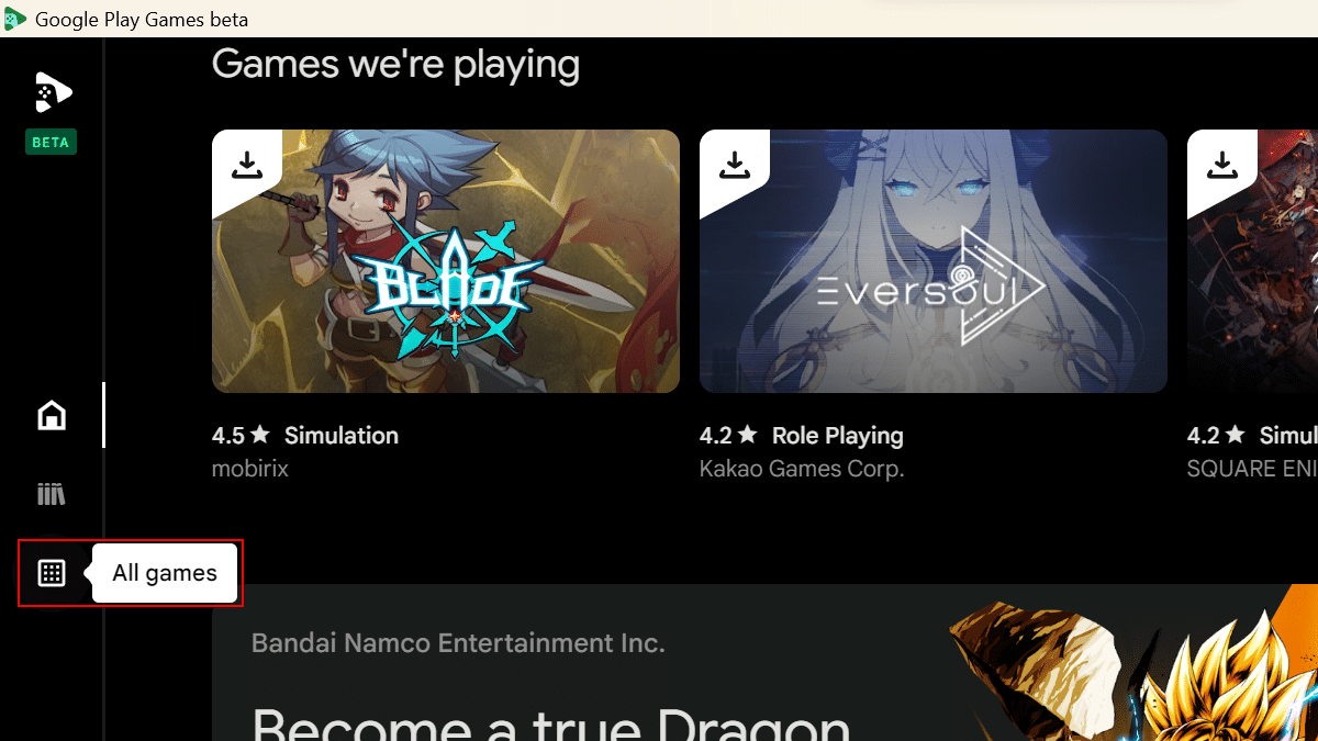 Selv om Google Play Games-appen er en forhåndsvisning som en beta-nedlasting, gir den deg fortsatt tilgang til mange spill som 1945 Air Force, Blade Idle, Cookie Run: Kingdom og Evony: The King's Return. Katalogen har bare en håndfull spill, men Google vil fortsette å legge til flere titler.